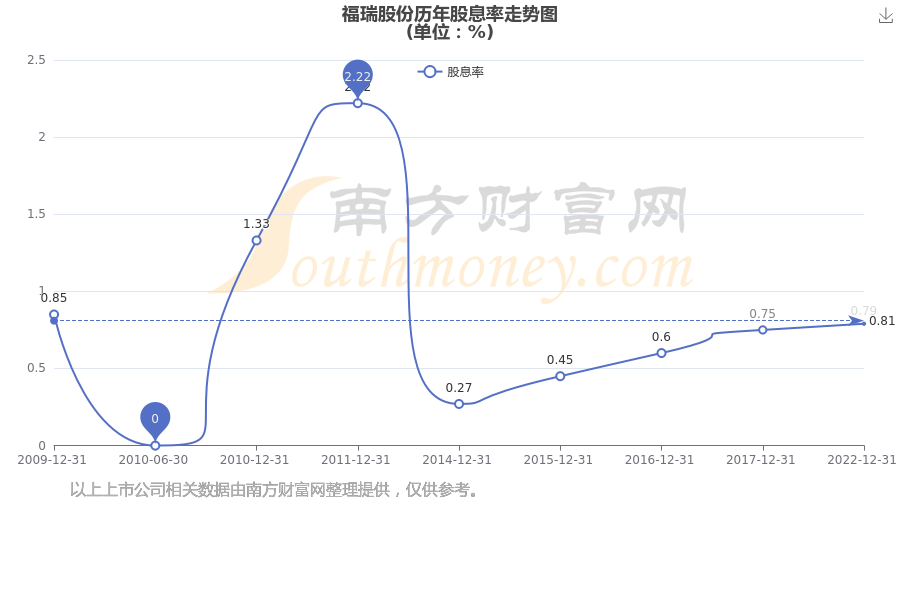 近年福瑞股份年度股息率走势如下图: