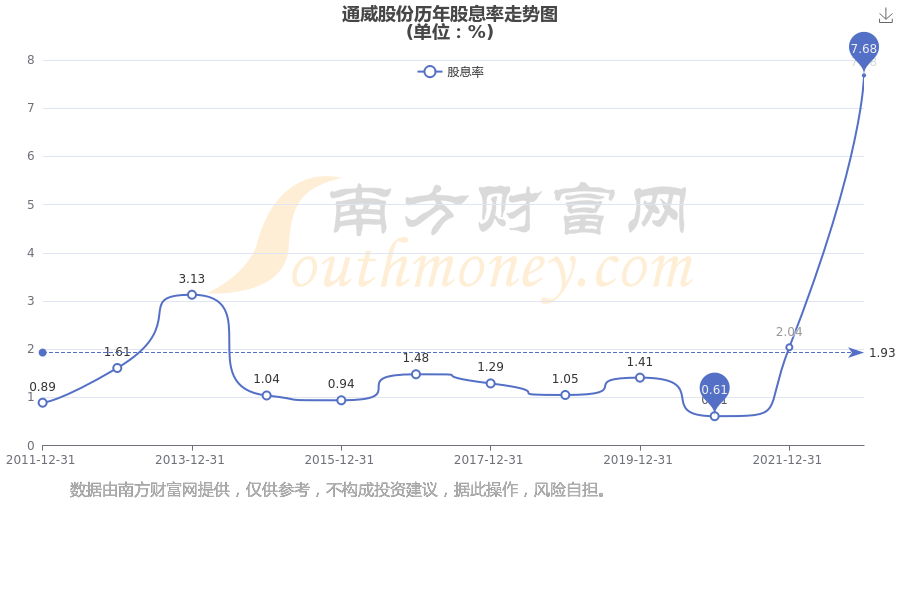 通威股份最新一次公布的分红方案为10派28.58元。本次权益分派股权登记日为2023年5月30日,除权除息日为2023年5月31日,派息日为2023年5月31日。