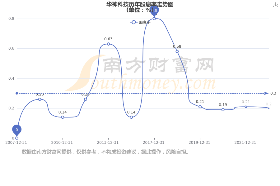 近年华神科技年度股息率走势如下图: