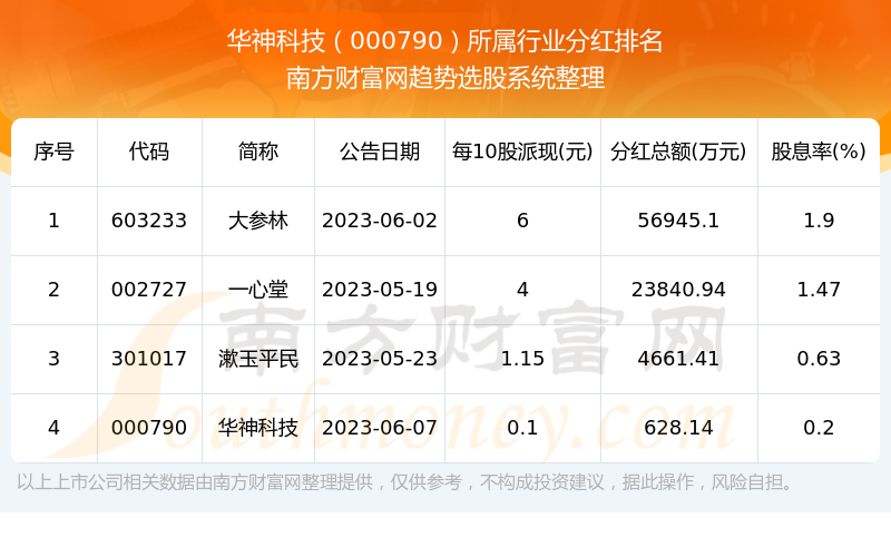 二、华神科技000790行业分红排名