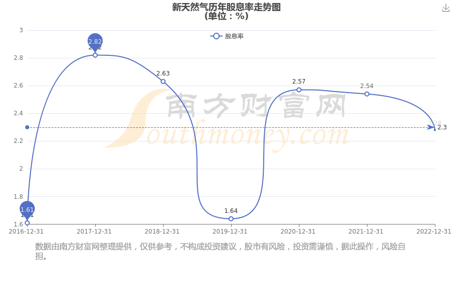 新天然气最新一次公布的分红方案为10派6元。本次权益分派股权登记日为2023年5月31日,除权除息日为2023年6月1日,派息日为2023年6月1日。