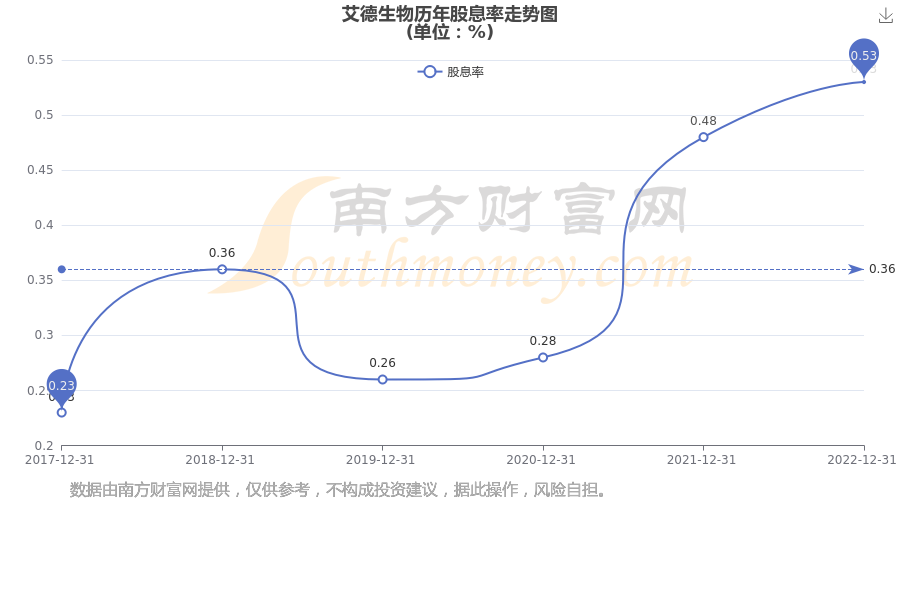 近年艾德生物年度股息率走势如下图: