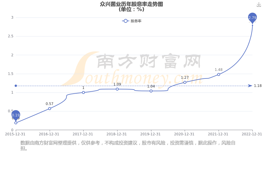 近年众兴菌业年度股息率走势如下图: