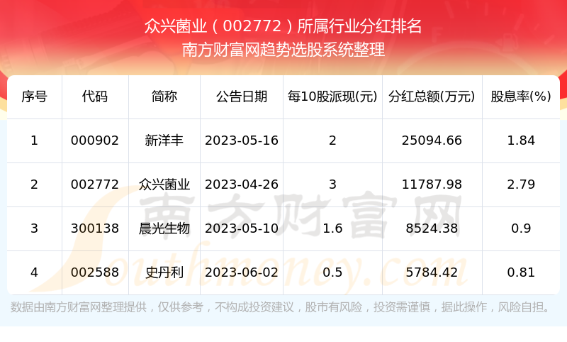 二、众兴菌业002772行业分红排名