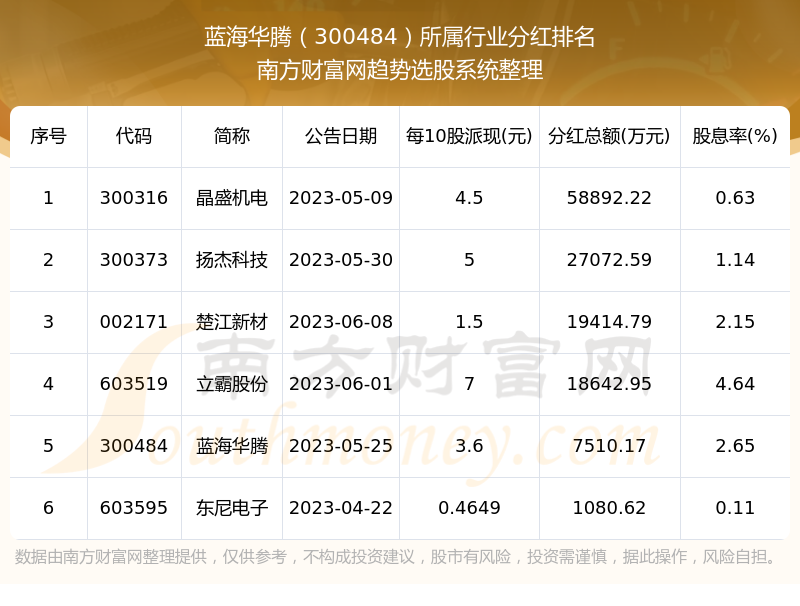 二、蓝海华腾300484行业分红排名