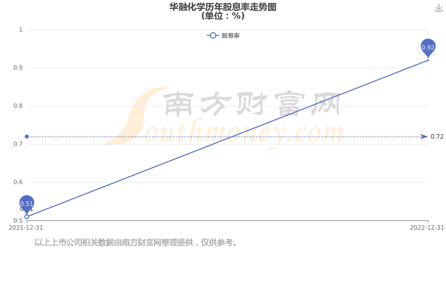 近年华融化学年度股息率走势如下图: