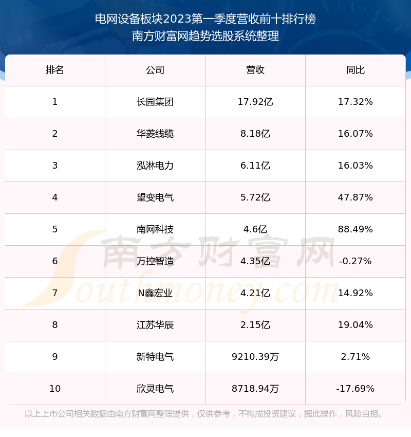 按照趋势选股系统统计,该股所属板块为电网设备板块,该板块共有12只股票,泰豪科技2023第一季度营收在该板块中排名为第12名,该板块2023第一季度营收排名前十的股票如下表: