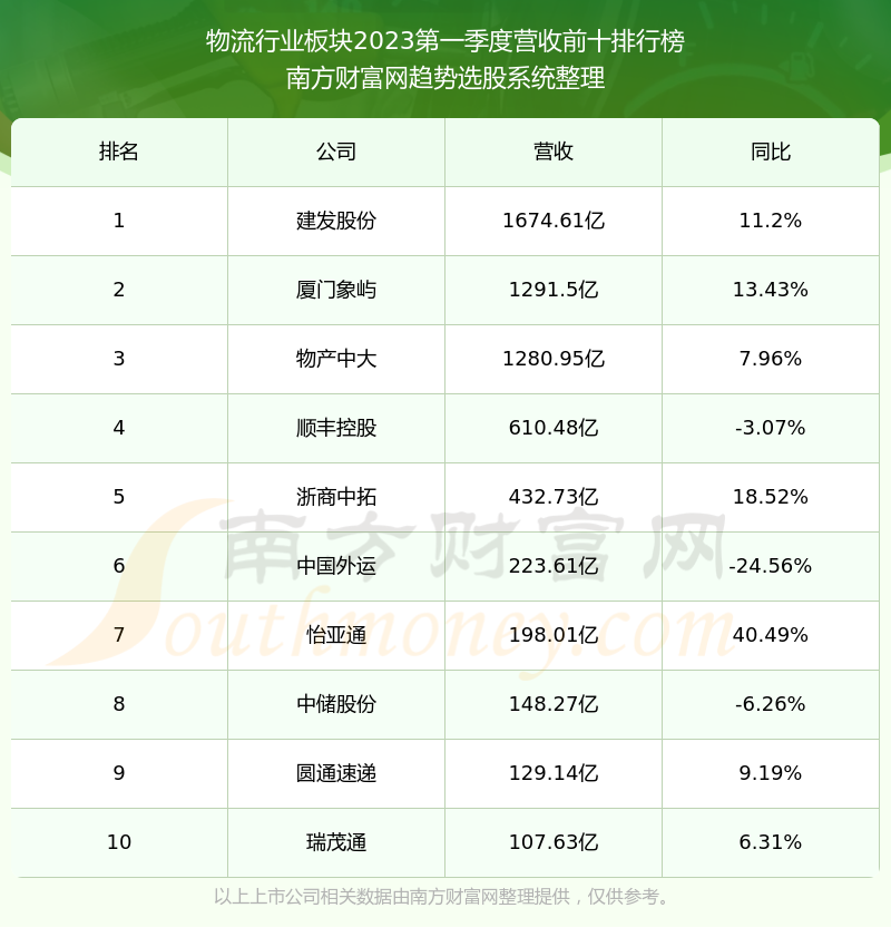 按照趋势选股系统统计,该股所属板块为物流行业板块,该板块共有57只股票,保税科技2023第一季度营收在该板块中排名为第47名,该板块2023第一季度营收排名前十的股票如下表: