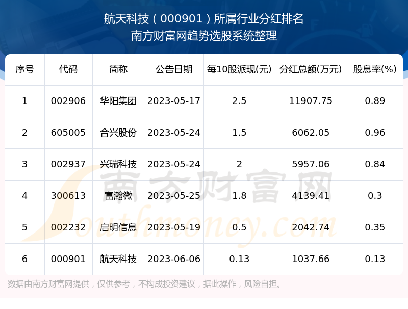 按照趋势选股系统统计,航天科技所属行业为汽车电子行业,汽车电子行业分红排名情况如下表: