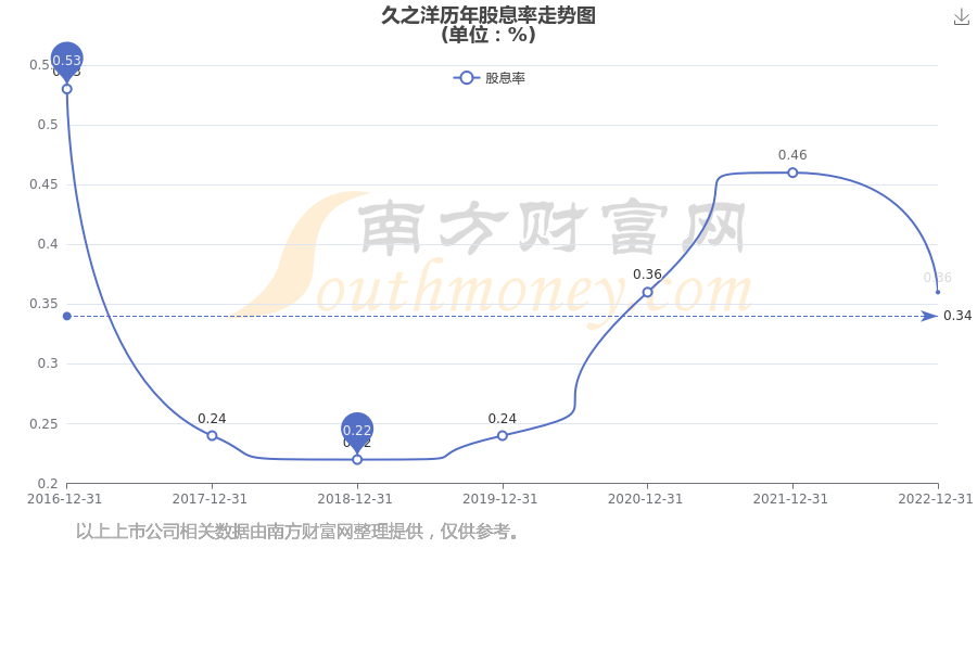 近年久之洋年度股息率走势如下图: