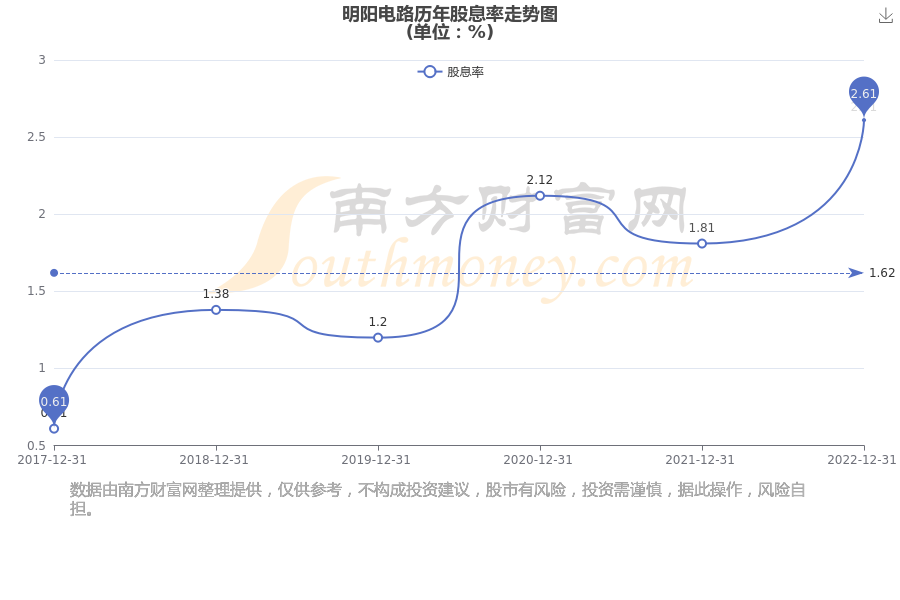 明阳电路最新一次公布的分红方案为10派3.5元。本次权益分派股权登记日为2023年5月8日,除权除息日为2023年5月9日,派息日为2023年5月9日。
