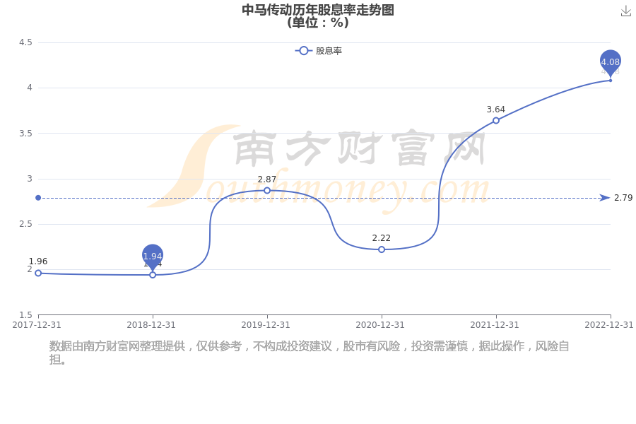 近年中马传动年度股息率走势如下图: