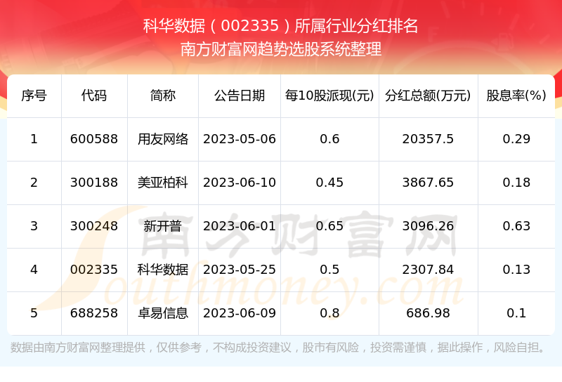 按照趋势选股系统统计,科华数据所属行业为电源设备行业,电源设备行业分红排名情况如下表: