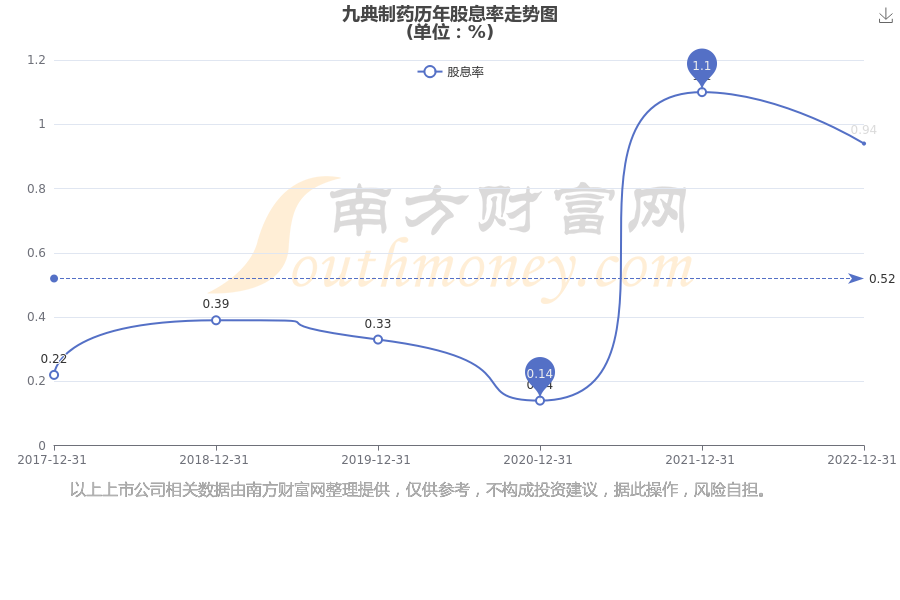 近年九典制药年度股息率走势如下图: