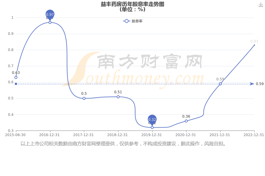 益丰药房最新一次公布的分红方案为10转4派4元。本次权益分派股权登记日为2023年6月6日,除权除息日为2023年6月7日,派息日为2023年6月7日。
