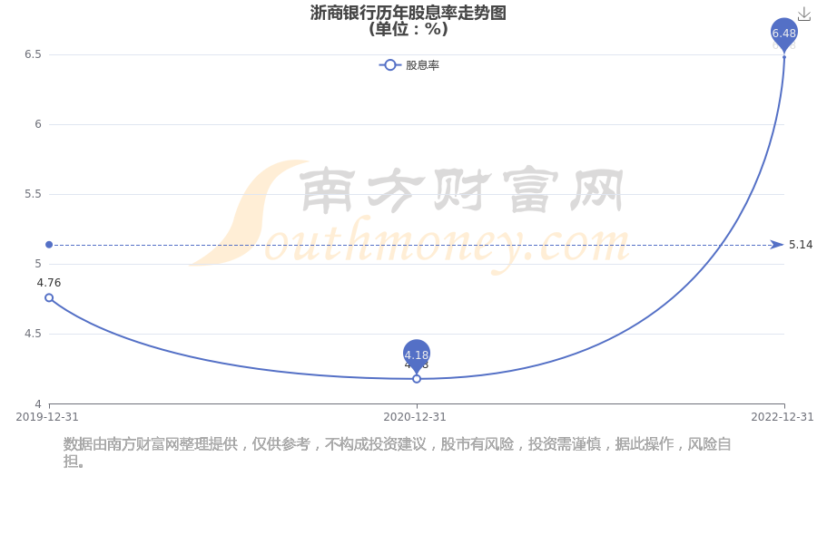 按照趋势选股系统统计,浙商银行所属行业为银行行业,银行行业分红排名情况如下表: