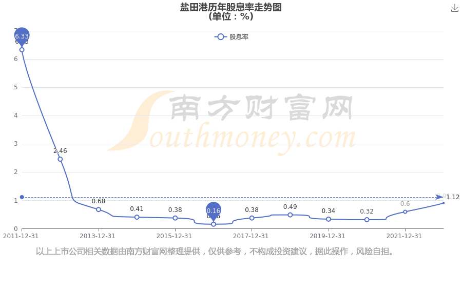 近年盐田港年度股息率走势如下图: