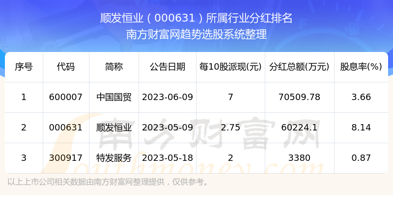 按照趋势选股系统统计,顺发恒业所属行业为物业管理行业,物业管理行业分红排名情况如下表:
