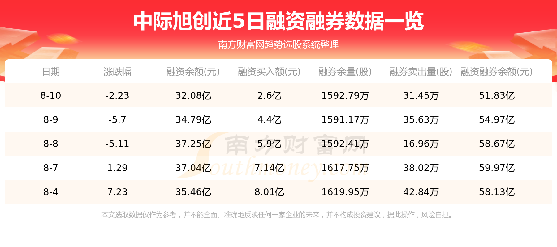 8月10日中际旭创融券信息显示,融资方面,当日融资买入2.6亿元,融资偿还5.31亿元,融资净买额-2.7亿元。融券方面,融券卖出31.45万股,融券偿还29.84万股,融券余量1592.79万股,融券余额19.75亿元。融资融券余额51.83亿元。近5日融资融券数据一览见下表: