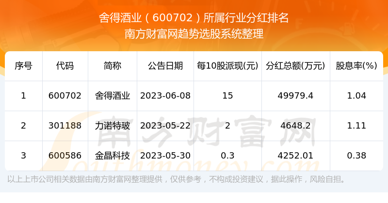 二、舍得酒业600702行业分红排名