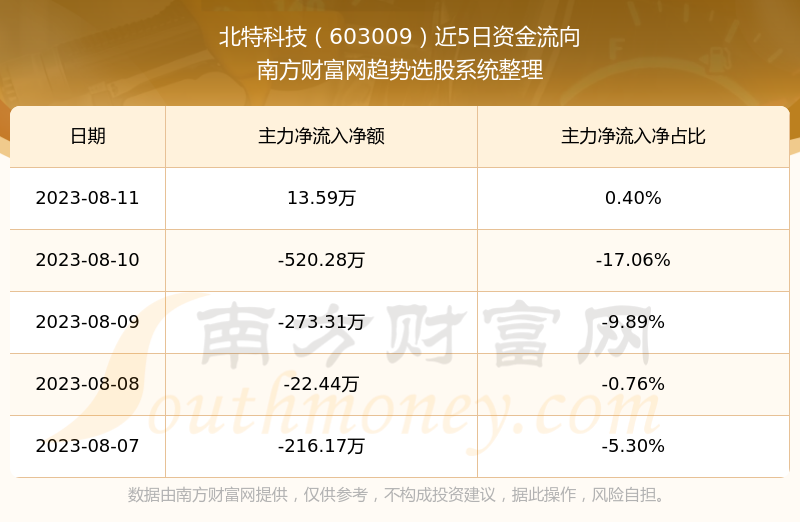 二、北特科技(603009)近期盘面、资金面情况