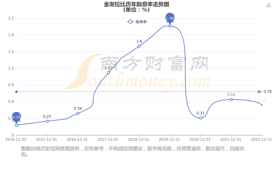 近年金发拉比年度股息率走势如下图: