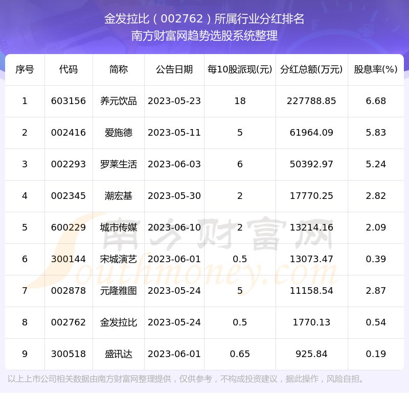 二、金发拉比002762行业分红排名