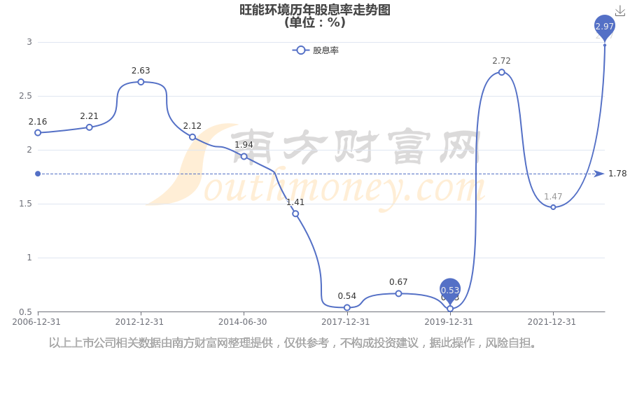 近年旺能环境年度股息率走势如下图: