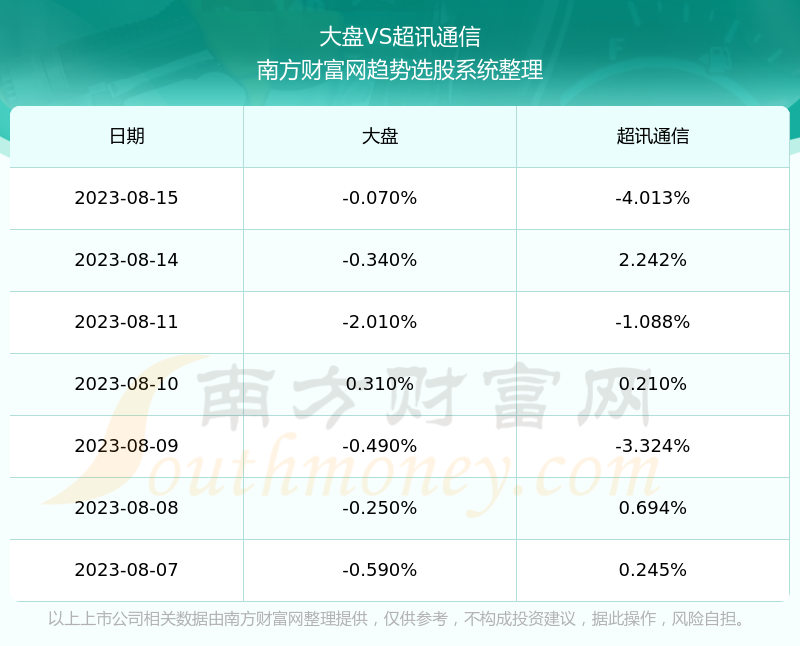 按照趋势选股系统统计,该股所属板块为通信服务板块,该板块共有3只股票,超讯通信2023第二季度营收在该板块中排名为第3名,该板块2023第二季度营收排名前十的股票如下表: