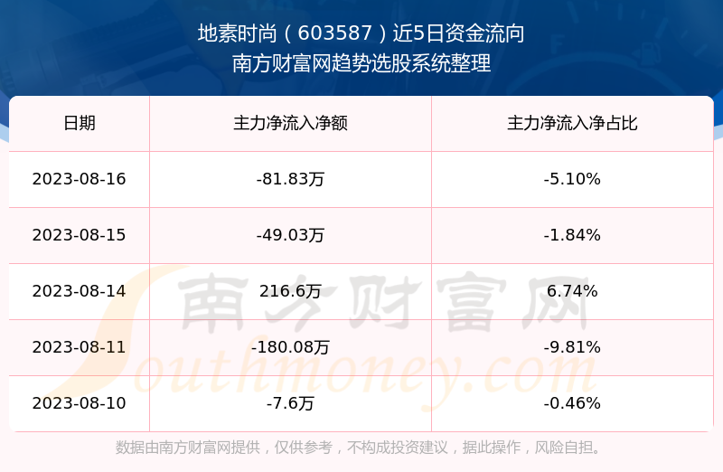 二、地素时尚(603587)近期盘面、资金面情况