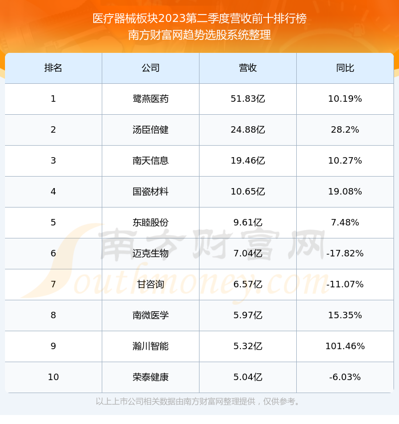 按照趋势选股系统统计,该股所属板块为医疗器械板块,该板块共有25只股票,万东医疗2023第二季度营收在该板块中排名为第25名,该板块2023第二季度营收排名前十的股票如下表: