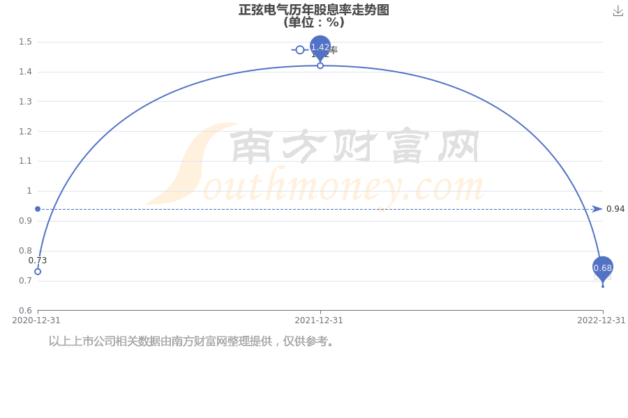 近年正弦电气年度股息率走势如下图: