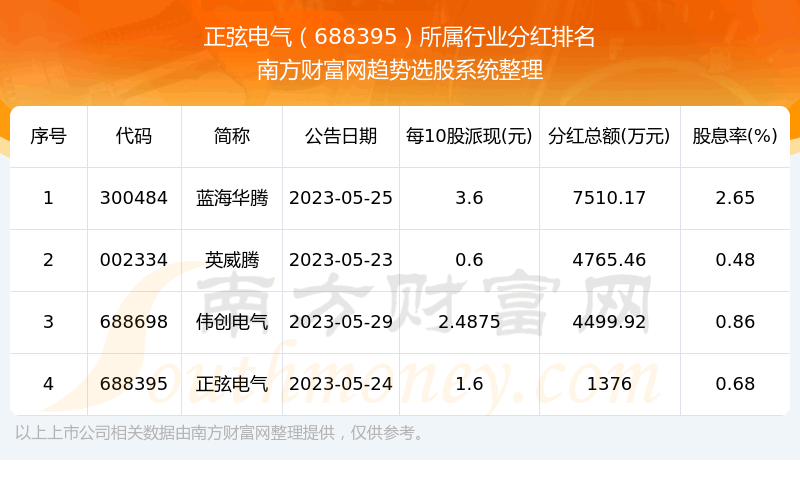 二、正弦电气688395行业分红排名
