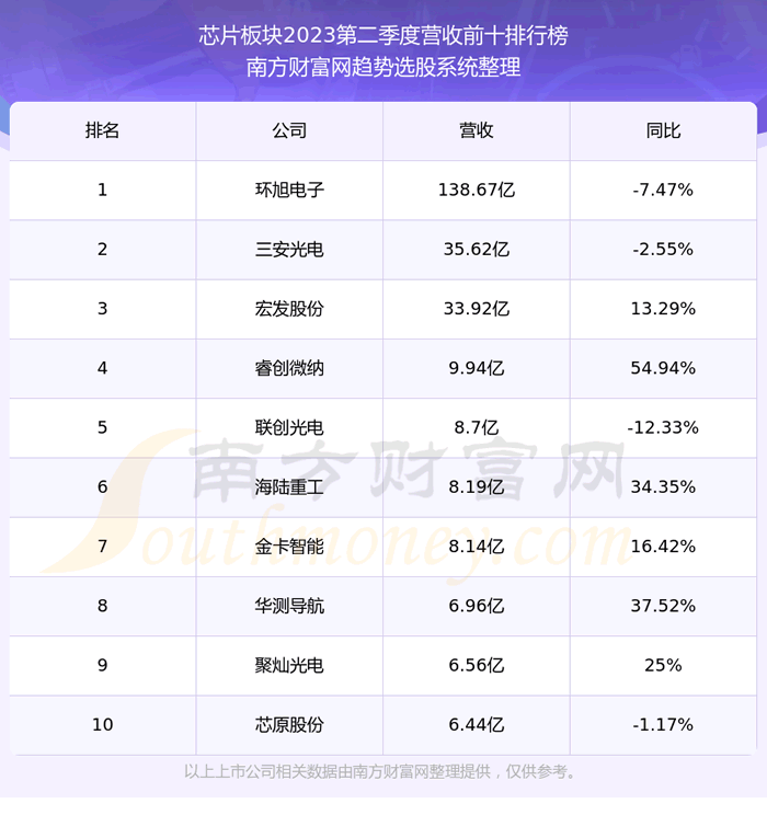 按照趋势选股系统统计,该股所属板块为芯片板块,该板块共有27只股票,龙迅股份2023第二季度营收在该板块中排名为第27名,该板块2023第二季度营收排名前十的股票如下表: