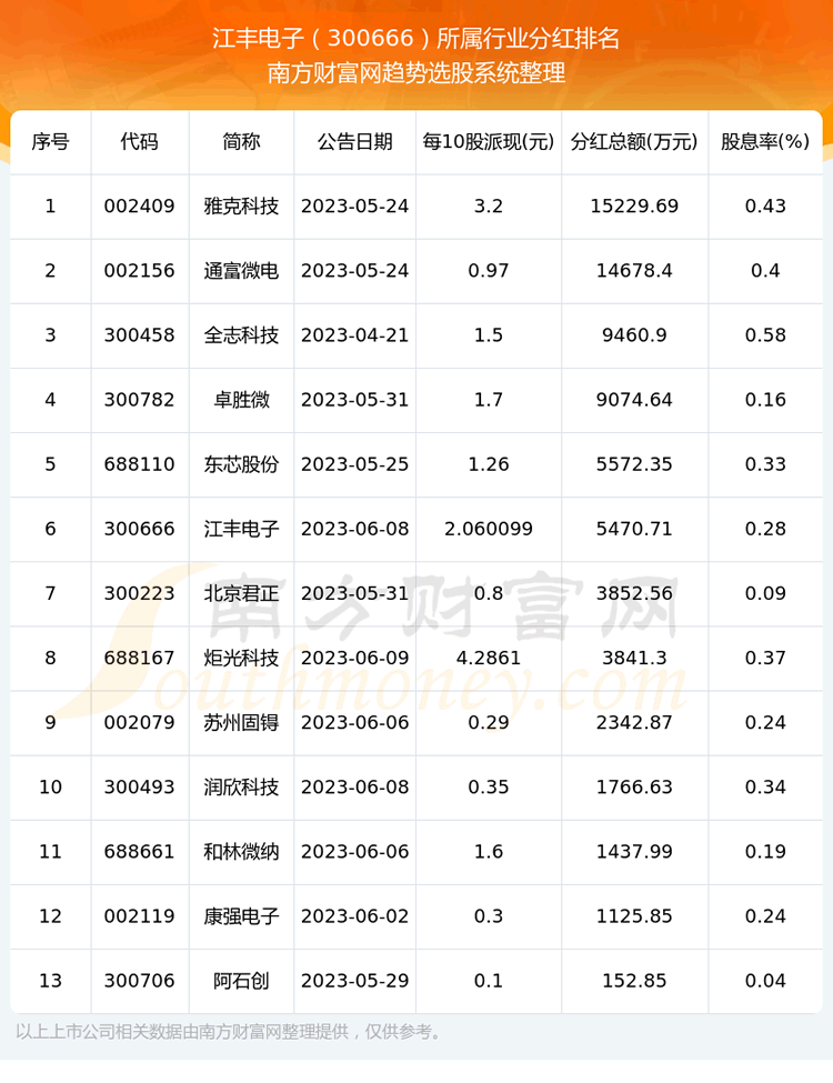二、江丰电子300666行业分红排名
