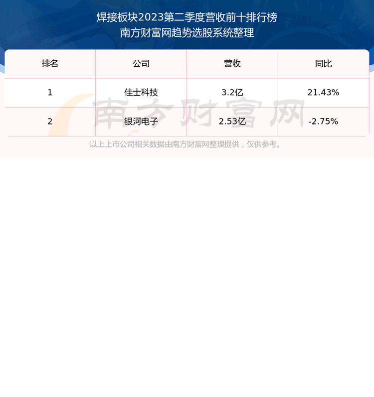 按照趋势选股系统统计,该股所属板块为焊接板块,该板块共有2只股票,联赢激光2023第二季度营收在该板块中排名为第2名,该板块2023第二季度营收排名前十的股票如下表: