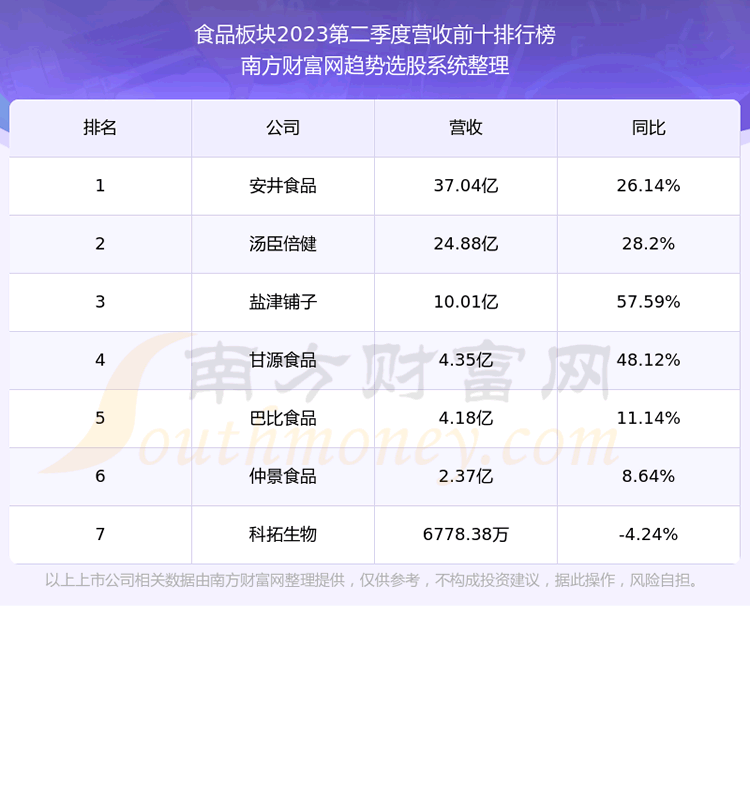 按照趋势选股系统统计,该股所属板块为食品板块,该板块共有7只股票,绝味食品2023第二季度营收在该板块中排名为第7名,该板块2023第二季度营收排名前十的股票如下表: