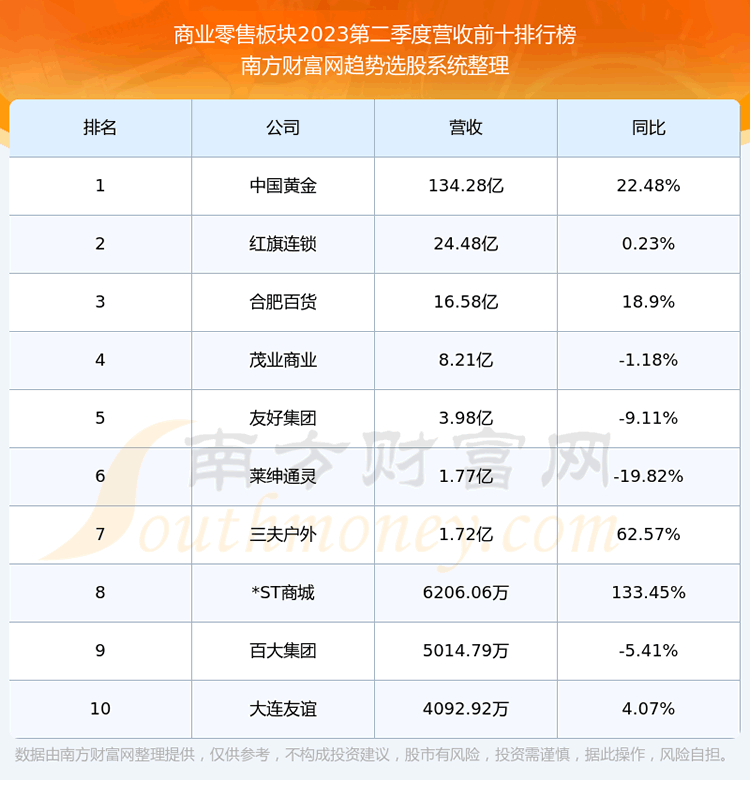 按照趋势选股系统统计,该股所属板块为商业零售板块,该板块共有10只股票,北京人力2023第二季度营收在该板块中排名为第10名,该板块2023第二季度营收排名前十的股票如下表: