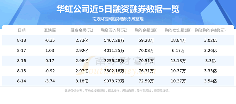 华虹公司8月18日融券信息显示,融资方面,当日融资买入5467.28万元,融资偿还7362.65万元,融资净买额-1895.37万元。融券方面,融券卖出18.84万股,融券偿还29.63万股,融券余量59.28万股,融券余额2896.6万元。融资融券余额3.02亿元。近5日融资融券数据一览见下表: