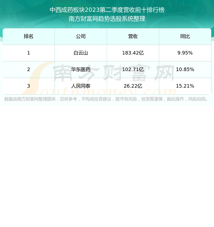 按照趋势选股系统统计,该股所属板块为中西成药板块,该板块共有3只股票,大参林2023第二季度营收在该板块中排名为第3名,该板块2023第二季度营收排名前十的股票如下表: