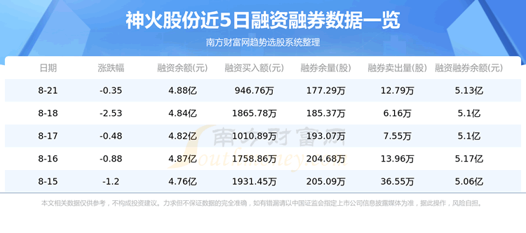 神火股份8月21日融券信息显示,融资方面,当日融资买入946.76万元,融资偿还522.84万元,融资净买额423.92万元。融券方面,融券卖出12.79万股,融券偿还20.87万股,融券余量177.29万股,融券余额2515.73万元。融资融券余额5.13亿元。近5日融资融券数据一览见下表: