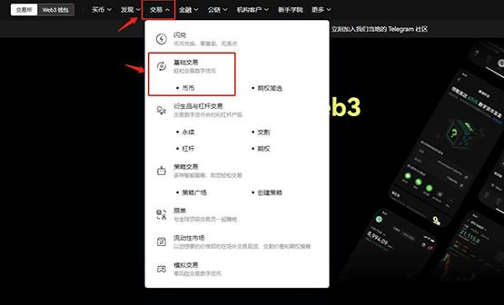5、登录进入首页,点击【交易】—【基础交易】—【币币】,进入交易页面。