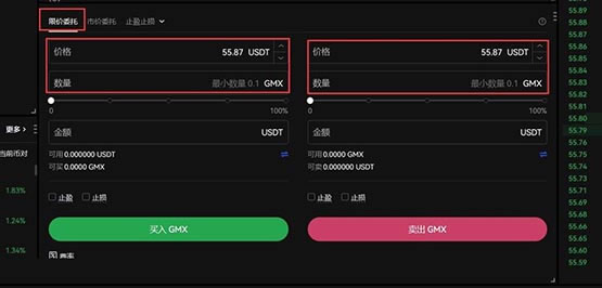 7、选择【限价委托】,输入买入/卖出数量,点击【买入GMX】/【卖出GMX】。
