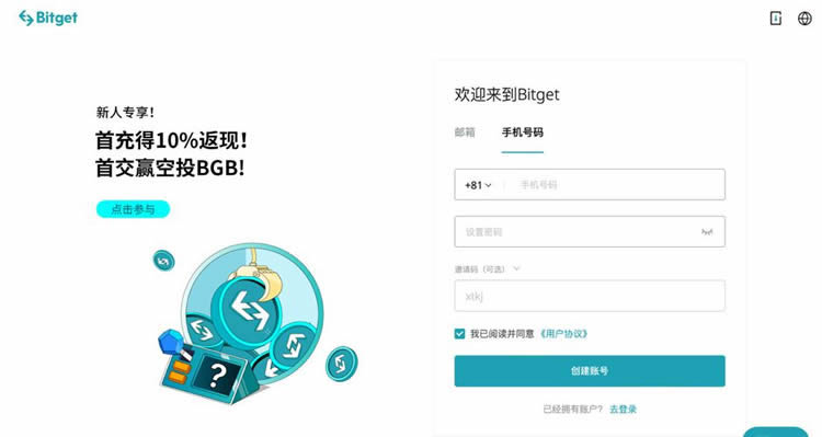 1. 打开Bitget官网,在首页点击注册,进入注册页面