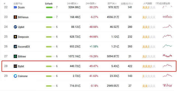 Bybit交易所目前在全球交易所综合排行榜上排第28位,它是一家全球性的数字资产衍生品交易服务平台。用户遍布全球200多个国家,覆盖北美、欧洲、亚太等地区,为个人用户及专业机构提供专业的数字资产衍生品交易服务。Bybit通过数字资产与传统金融的结合,引领数字资产的生态发展,并且提供一流的流动性,致力于打造业内最安全、公平、高效及人性化的交易服务平台。