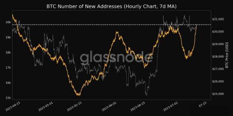 数据显示,比特币新地址数量刚刚达到19.833.952个,创一个月新高。