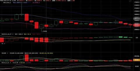 四小时图看,虽然比价有所回撤,但是力度并不大,比价依旧是保持上行趋势。日线图可以看出近日行情都是围绕中上轨去走,也始终并未跌破下方支撑,表明下行的空间并不大。对于日内的行情,依旧是维持做多的思路来进行行情的布局就可以了,下方支撑在29500这一带的位置,回撤下方支撑可以继续进行多单的介入,后续上方的压力目标在31000附近,维持区间,上方的压力可以突破,那么就再来继续上看长线就可以了,长线进一步的目标在3180.维持区间就行,而下方短线回撤支撑守不住,防守支撑就是在29500.到了这里的支撑的话我们再来进行抄底就好,维持好区间的行情,逐步等待行情打开区间即可。