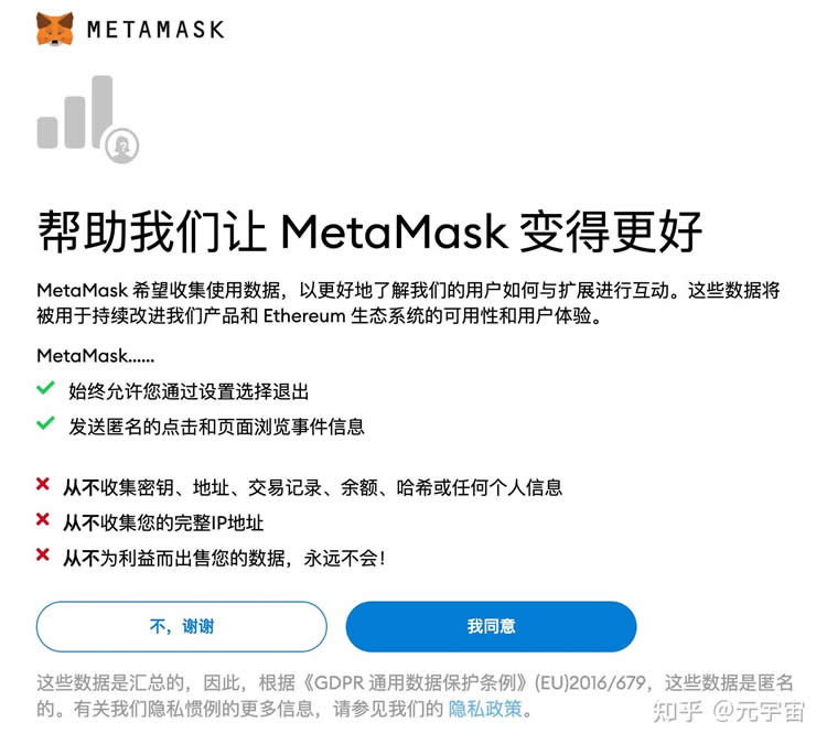1、如下图所示跟着引导一步步走,如果之前用过MetaMask,可点击左侧“导入现有钱包”进行助记词导入,第一次使用的新用户请点击右侧“创建钱包”。