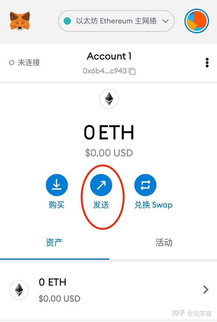 3、如需向平台或其他钱包转币,先点击“发送”,接着在如下图窗口处录入对方钱包地址,填入转币数量,点击下一步,点击确认后等待网络完成转币。