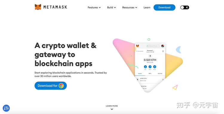 1、进入MetaMask官网https://metamask.io/,如下图所示,点击Download for